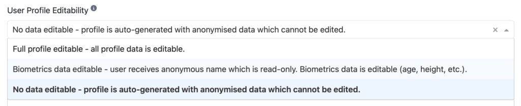 ▶︎ Biometrics data editable: users are only requested to fill in biometric (age, weight, etc.) when registering. Name and email will be randomly auto-generated by the system.