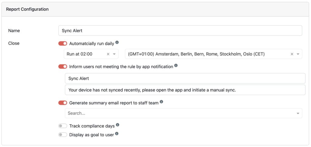 5. Enable summary email report and fill in your email address or shared mailbox of admin staff. This will provide you with a daily report of pending syncs.