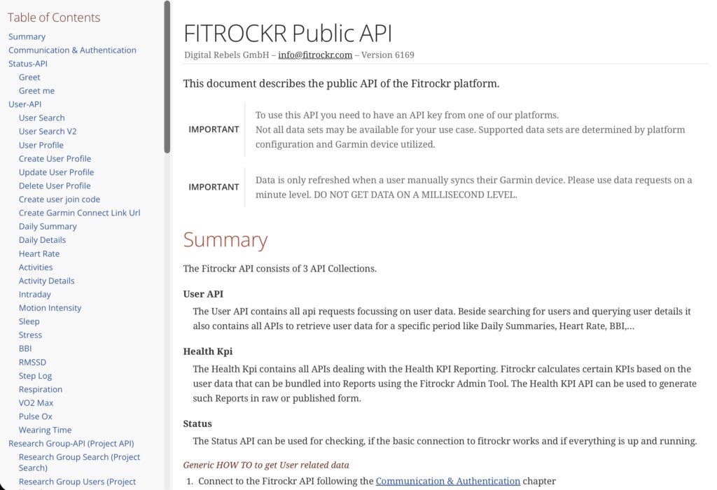 Fitrockr is a leading health and fitness data analytics platform that empowers organizations to connect, manage and analyze data from wearables. Designed for research, clinical studies, healthcare, coaching and fitness gamification, Fitrockr enables seamless integration of biometric and activity data, providing deep insights through advanced analytics, dashboards, reports and raw data downloads. Automated alerting, push notifications, surveys and outcome assessments support data collection. With a focus on data privacy, security, and local hosting options, Fitrockr supports global institutions in transforming raw health data into actionable outcomes. Learn more at www.fitrockr.com.